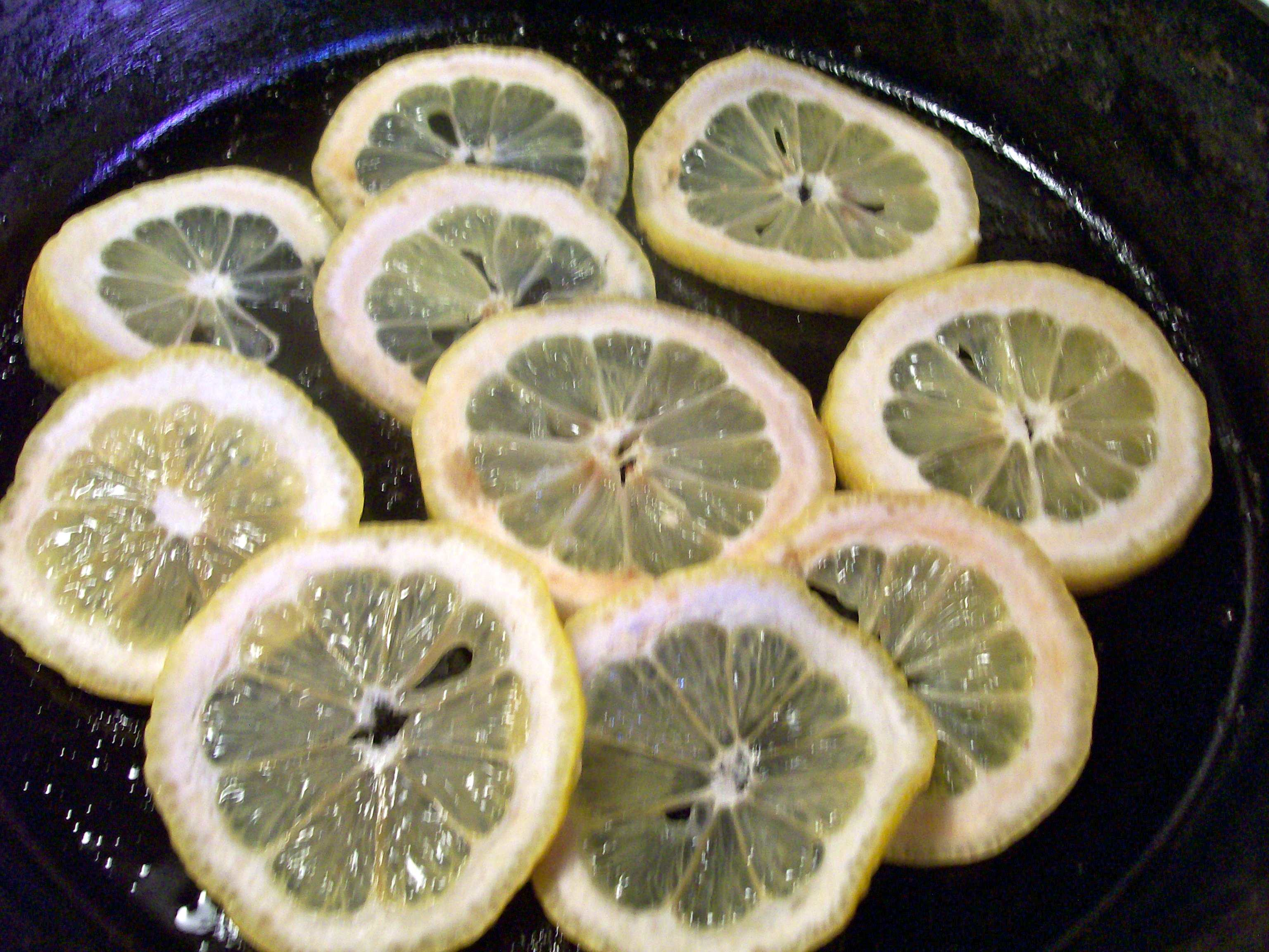 3. Arrange lemon slices in a single layer on the bottom of the baking dish.