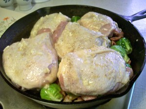 Looks delicious! I love Brussels sprouts sautéed with bacon – this is a great tist on that – I never would have thought of layering it over lemon and chicken on top. I bet the chicken fat and bacon make them beautiful. I’ll try it out some night soon (it will be great when our sprouts are redy in the garden – it looks like suck a comforting autumn dish!
