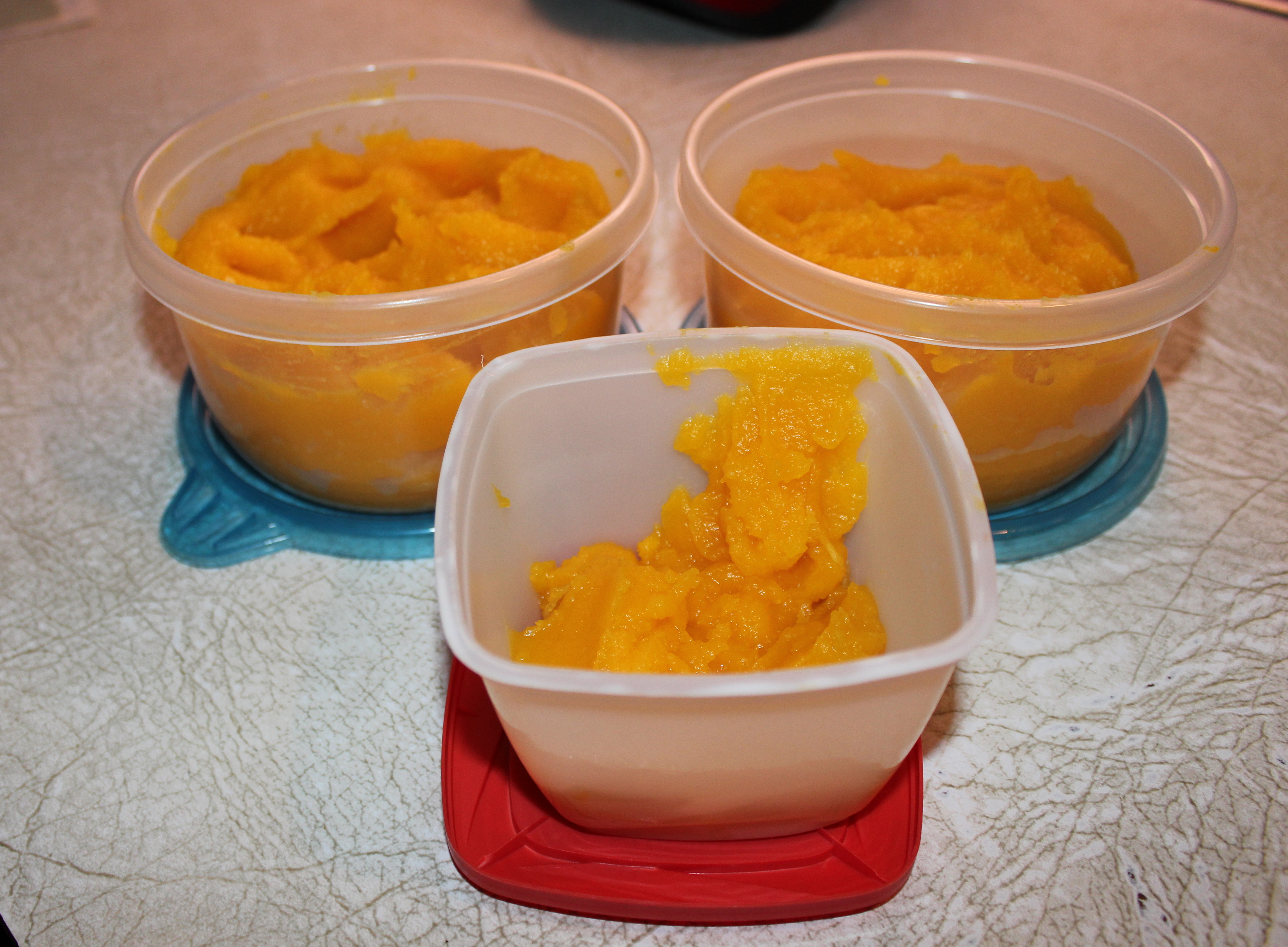 Whew, its working. Success at last. Working in small batches of pumpkin I successfully pureed the whole thing. My yield, after all that, was about 4 1/2 cups of puree that I divided into 2-cup amounts and put one in the freezer. The other one I am going to use in the recipe I mentioned. I’m saving that story for another posting. At this point in my story you are probably thinking the same thing I was: Isn’t easier to just buy a can of pumpkin? Of course, it’s definitely easier, but there’s just something about being able to say “I did it all myself” that makes you feel good.