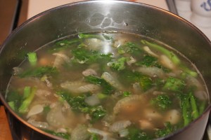 3. Add greens, orzo, and beans; cook 7 – 10 minutes or until orzo is done and vegetables are tender.