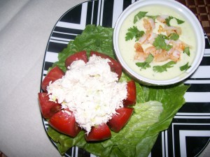 Here in the Northeast where I live, grits are not a regular staple of our diet, but when I travel South I always make it a point of having some, because I have grown to like them as a breakfast item with a little syrup and butter on them. Serving them as part of my main meal is new to me. However, since I had visitors from North Carolina, I decided to try to cook them a “real Southern meal”, and I had come across this recipe for grits served with nicely seasoned shrimp in a gravy to spoon over them. Let me tell you right at the start that this was a big success, so I am very happy that I was adventurous enough to try this recipe.