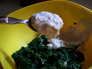 - 1 pkg. frozen chopped spinach, defrosted and well drained