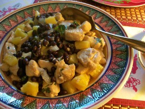 Quinoa is the new darling of the grain world and if you have not tried it yet this dish “hides” it so well you will not know it’s there. Quinoa has double the protein and fiber of rice so I felt that I owed it to myself to give it a try. I must admit I was not overly taken with it when served plain, but when combined with other ingredients it is enjoyable with its nutty flavor. If you know someone who is a little hesitant to try something new, this recipe will be a good way to introduce them to quinoa.