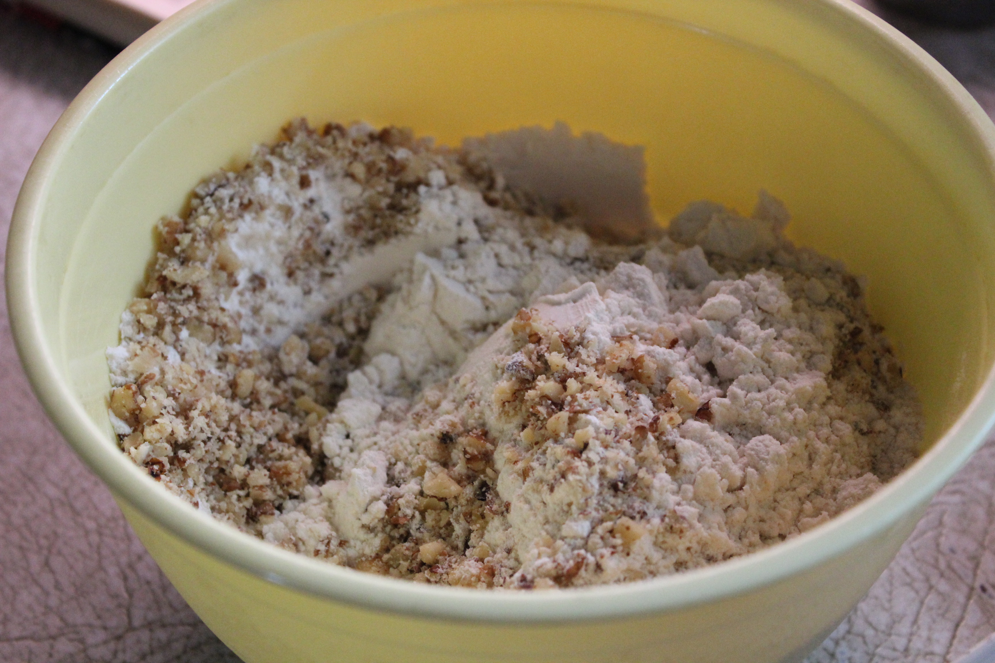 3. Whisk together all the dry ingredients, adding in the chopped nuts also.