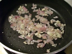 2. Add the chopped onion and crushed garlic and cook 2 to 3 minutes.