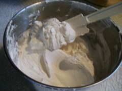 Fold in the marshmallow creme. This can be really sticky so I used my beater on low speed to get the marshmallow mixed in evenly.