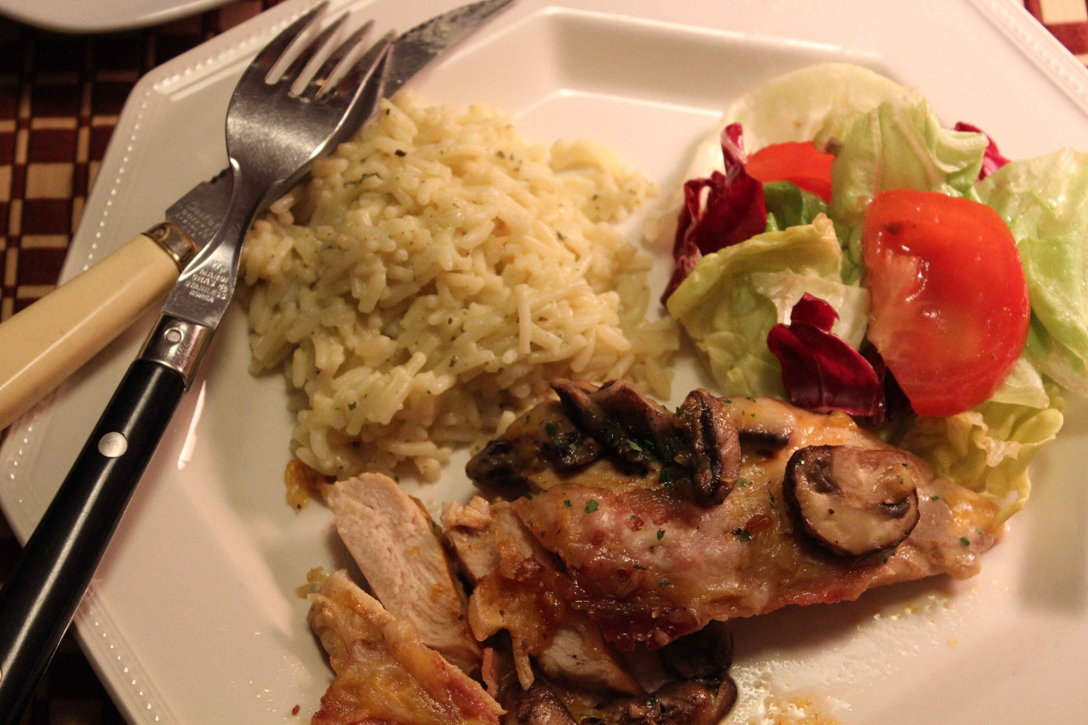 I served it with a salad consisting of romaine, avocado, and orange sections with a ginger-sesame dressing.
