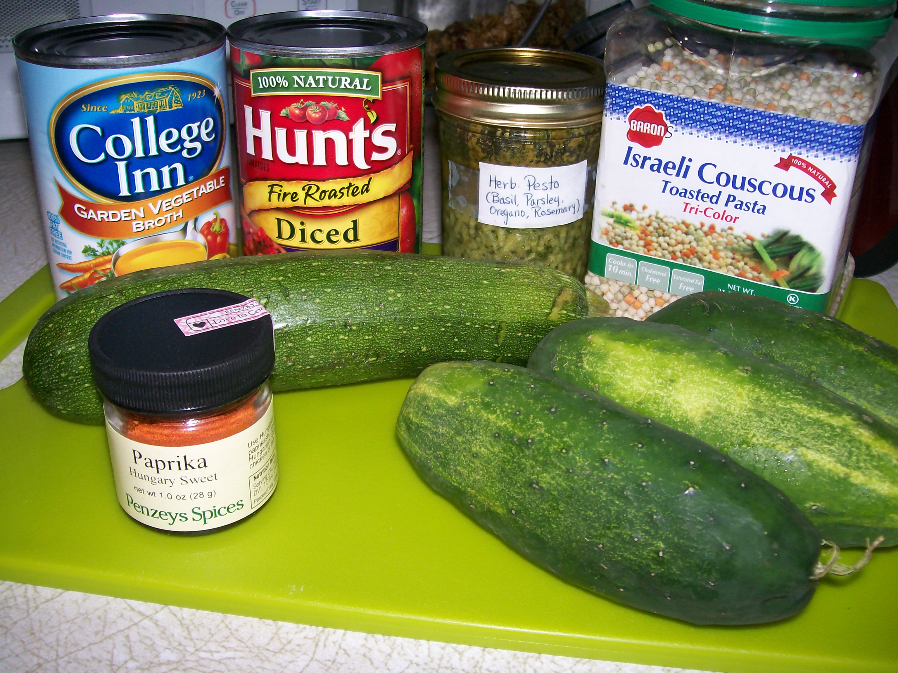 First we’re going to go to our refrigerators to gather up all the delicious things we’ll need. If those things should happen to be roasted, pesto-ed, or melty, that’s ideal.