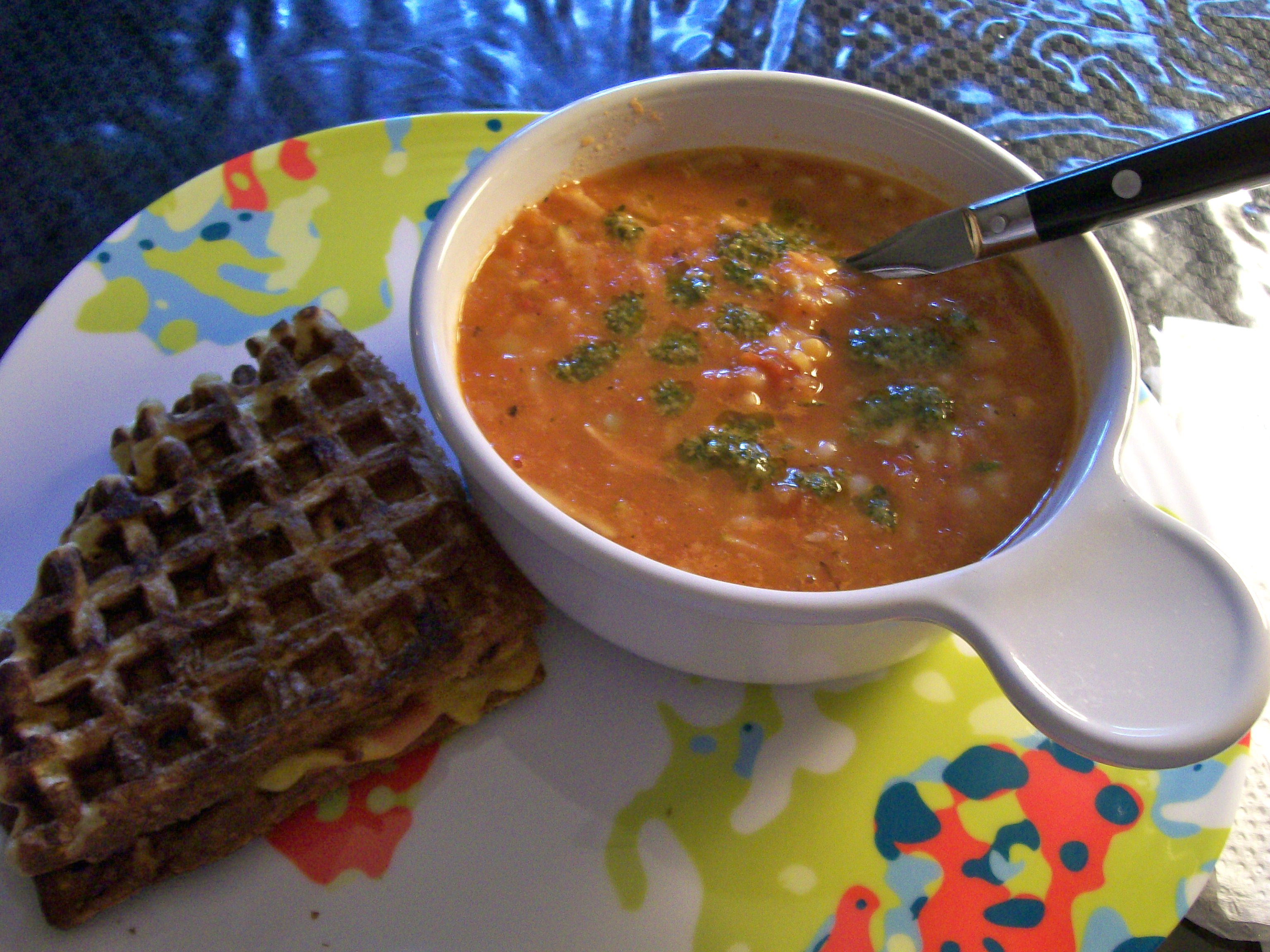 Under these house-bound conditions, almost as soon as breakfast is over, I start thinking about lunch. Wouldn’t you? I’m imagining some kind of a grilled cheese sandwich. Most folks love the combo of tomato soup and grilled cheese, so let me see if I can cram the two of them together in a knock-your-socks-off sandwich. Get ready for an ooey-gooey delight.