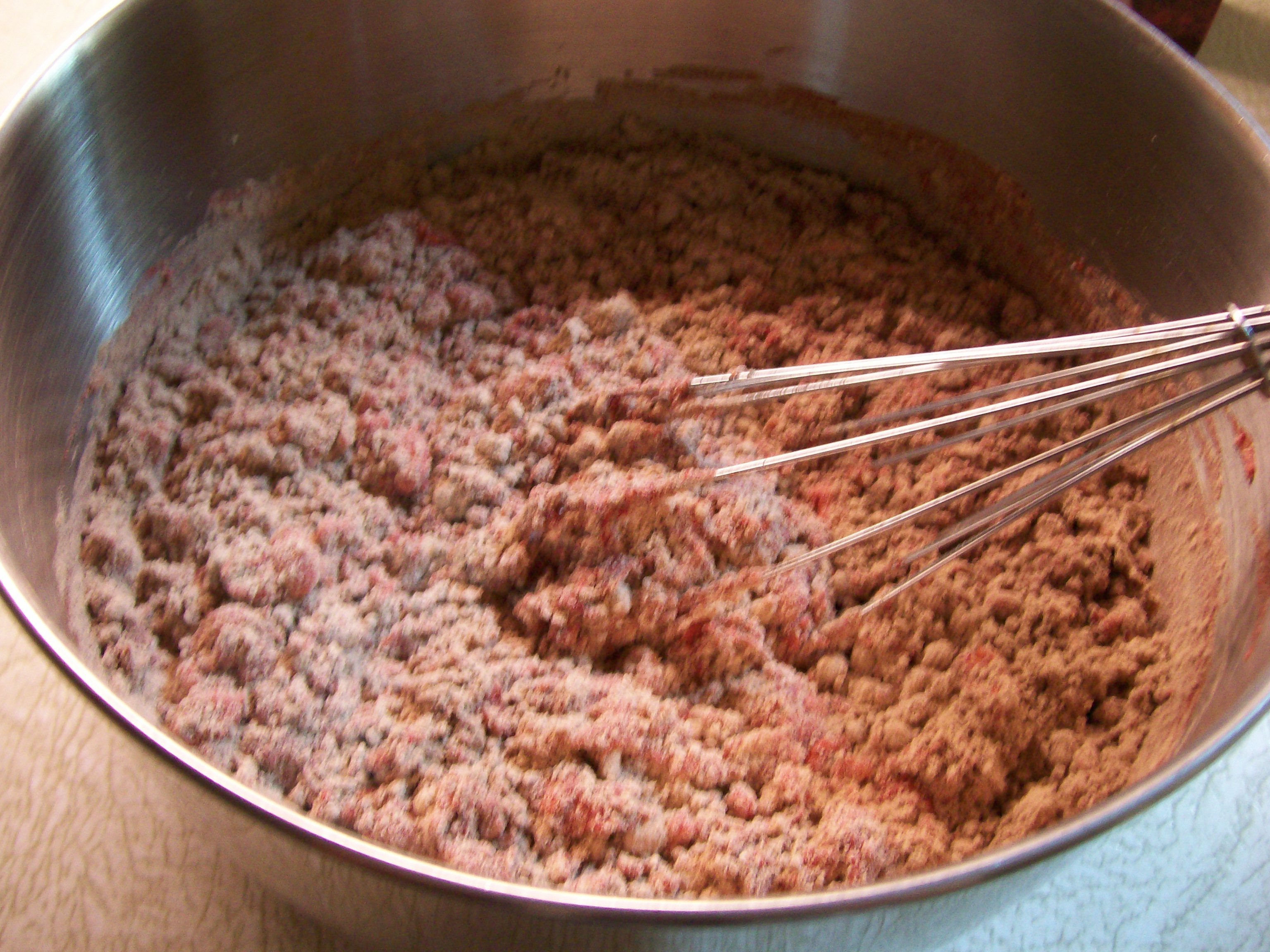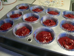 - In a large bowl, combine butter, eggs and red velvet cake mix until there are no large lumps left.