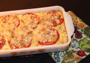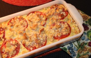 In this case the beefsteaks come in the form of juicy ripe tomatoes. Combined with other fresh garden vegetables, quinoa, and eggs this casserole is a meal in itself. We are making an effort to go meatless at least one day a week, so when I found this recipe I decided to try it out. It turned out to be so hearty and satisfying all you need add is a green salad.