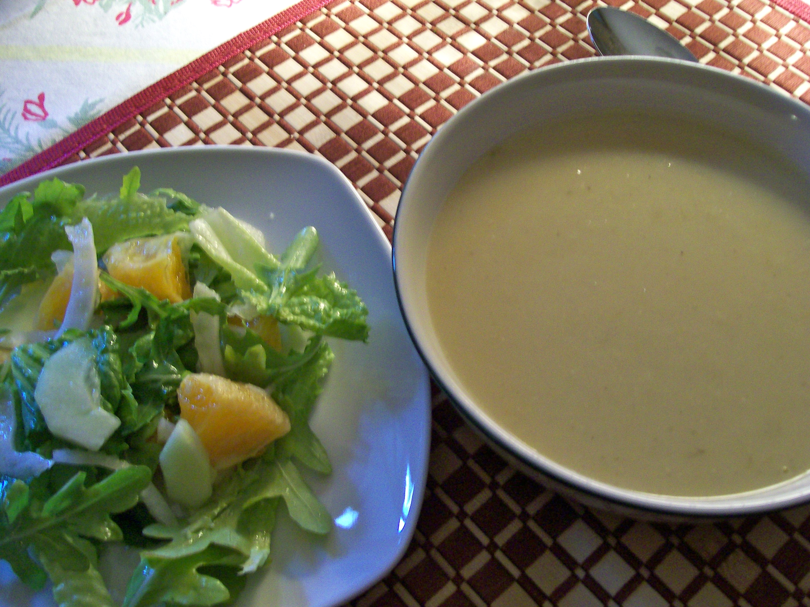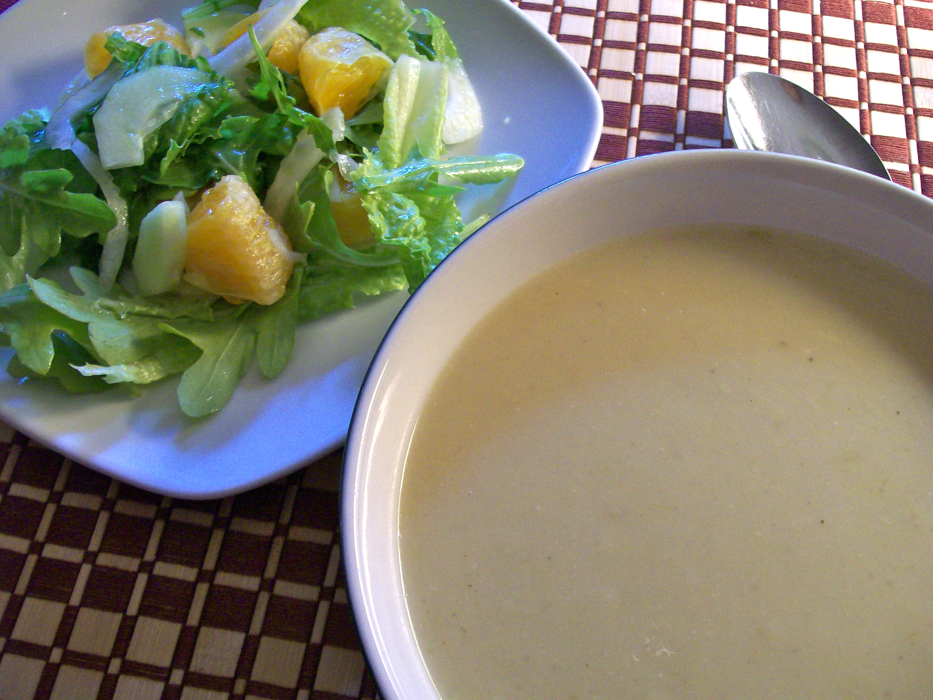 In up-scale restaurants this soup is called Vichyssoise. ( vish_e_swaz’) It is a thick soup made of pureed leeks, onions, potatoes, cream and chicken stock. It is traditionally served cold, but can also be eaten hot.